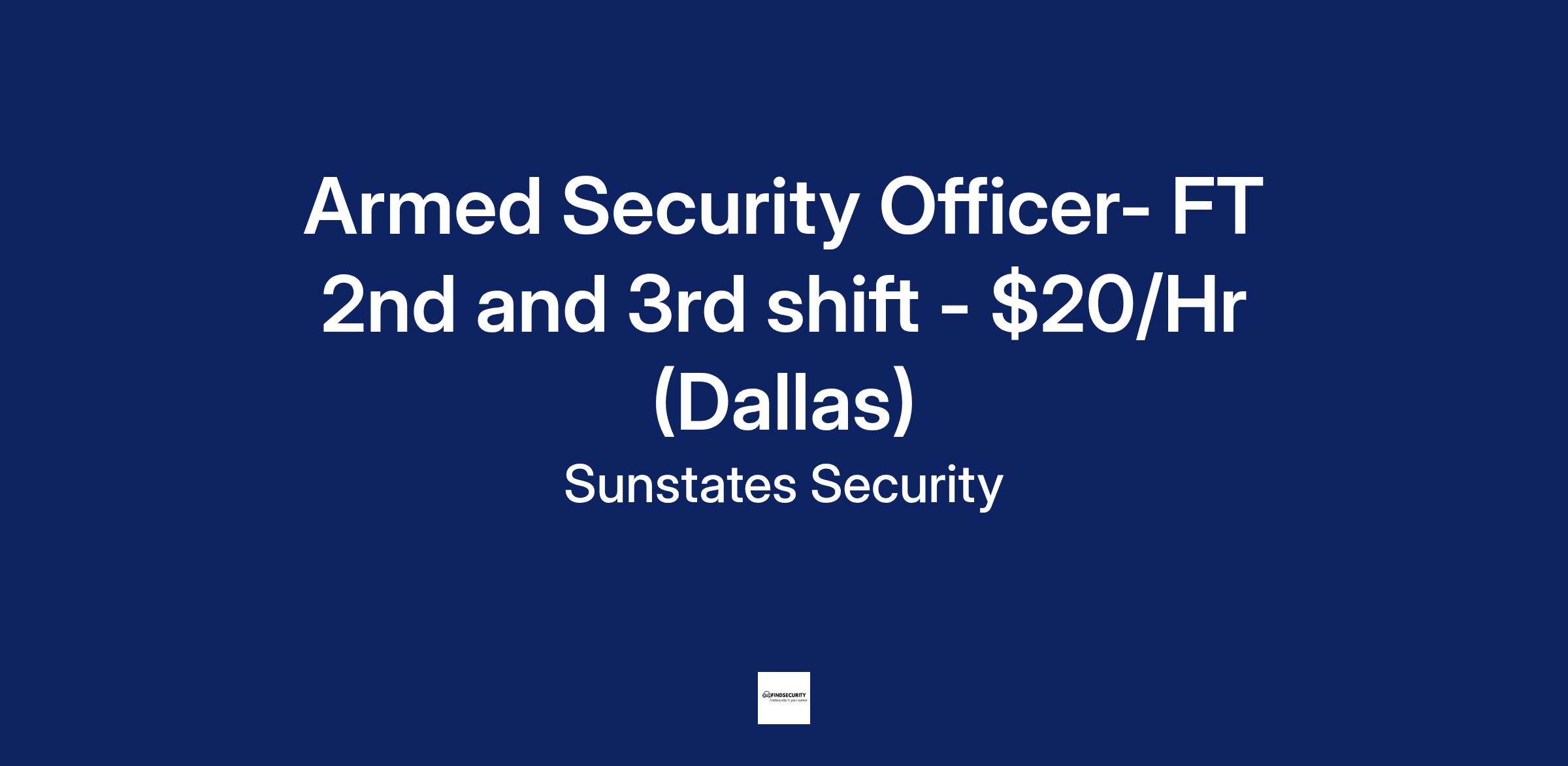 Armed Security Officer- FT 2nd and 3rd shift - $20/Hr (Dallas)