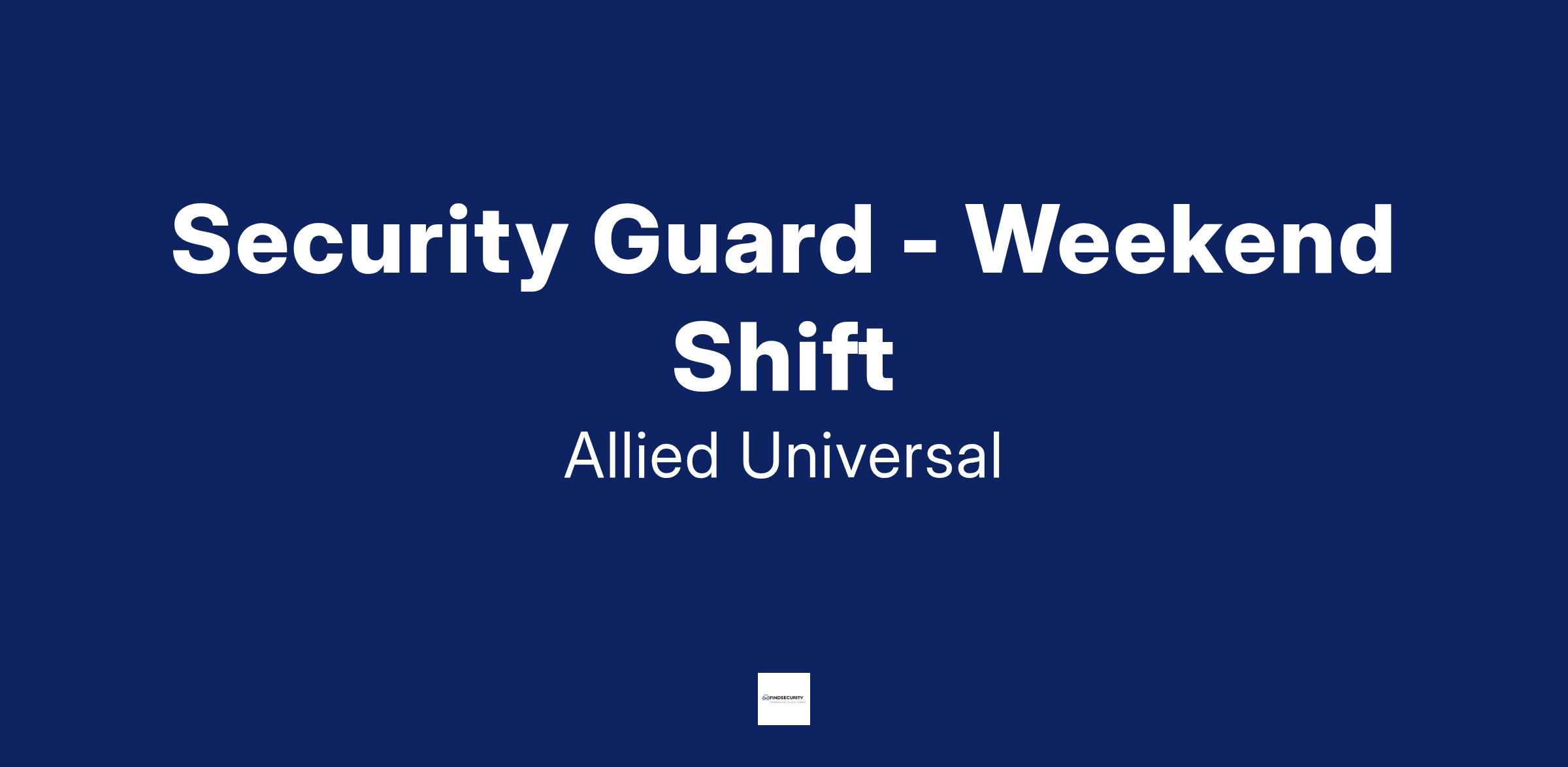 Allied Universal® is an Equal Opportunity Employer. All qualified applicants will receive consideration for employment without regard to race/ethnicity, age, color, religion, sex, sexual orientation, gender identity, national origin, genetic information, disability, protected veteran status or relationship/association with a protected veteran, or any other basis or characteristic protected by law. For more information: www.aus.com