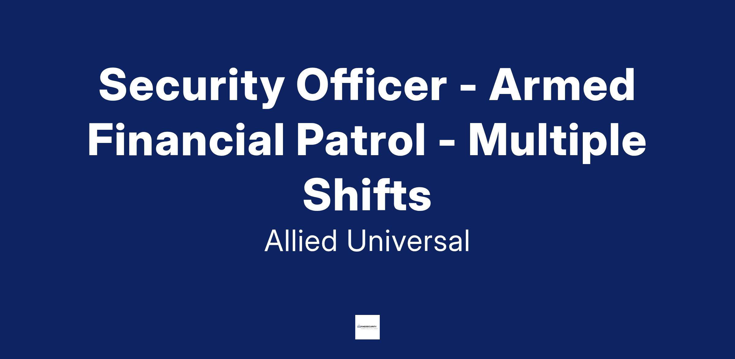 As a Security Officer - Armed Financial Patrol - Multiple Shifts in Conway, SC, you will serve and safeguard clients in a range of industries such as Financial Institutions and more .