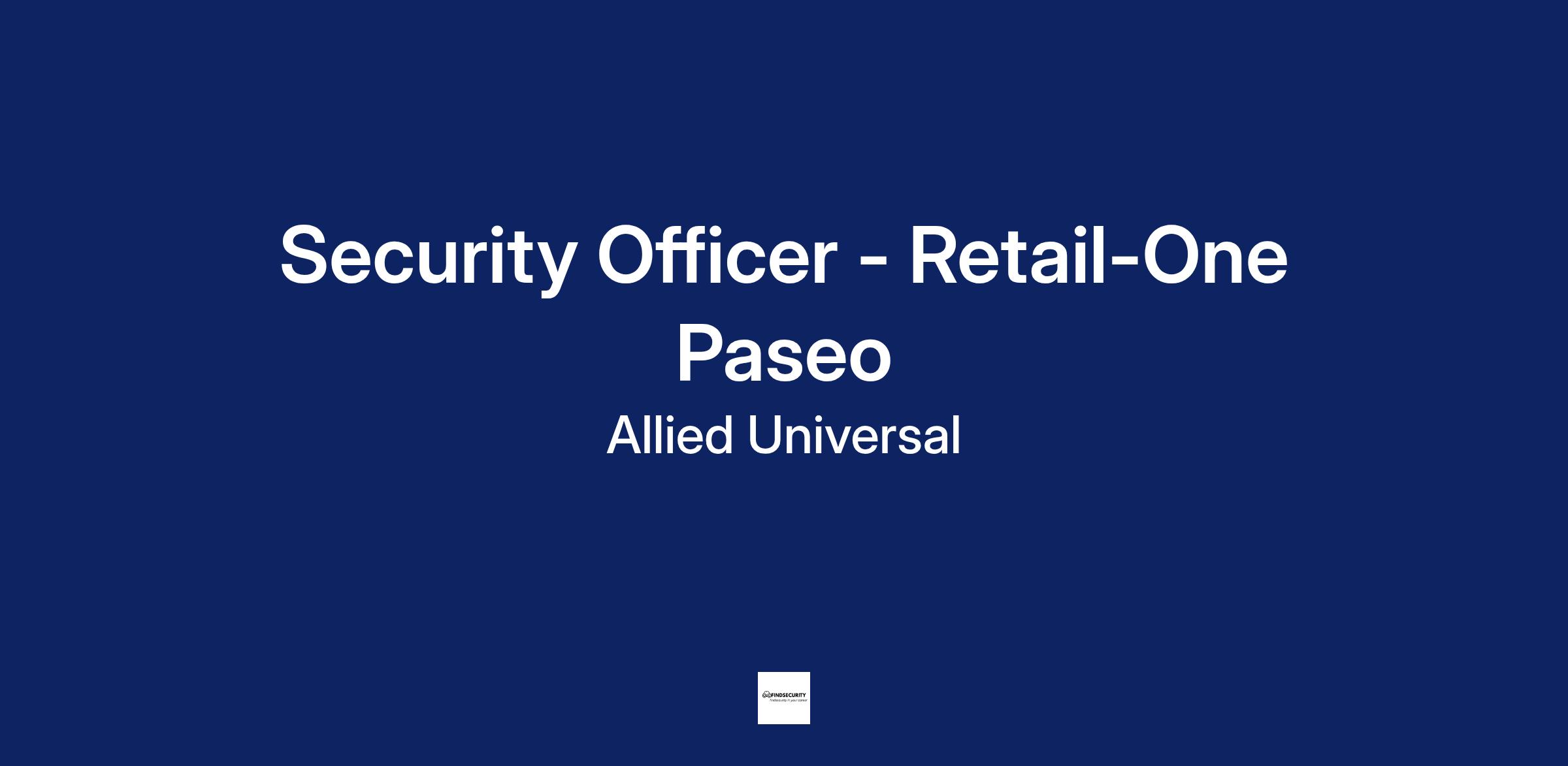 Security Officer - Retail-One Paseo
