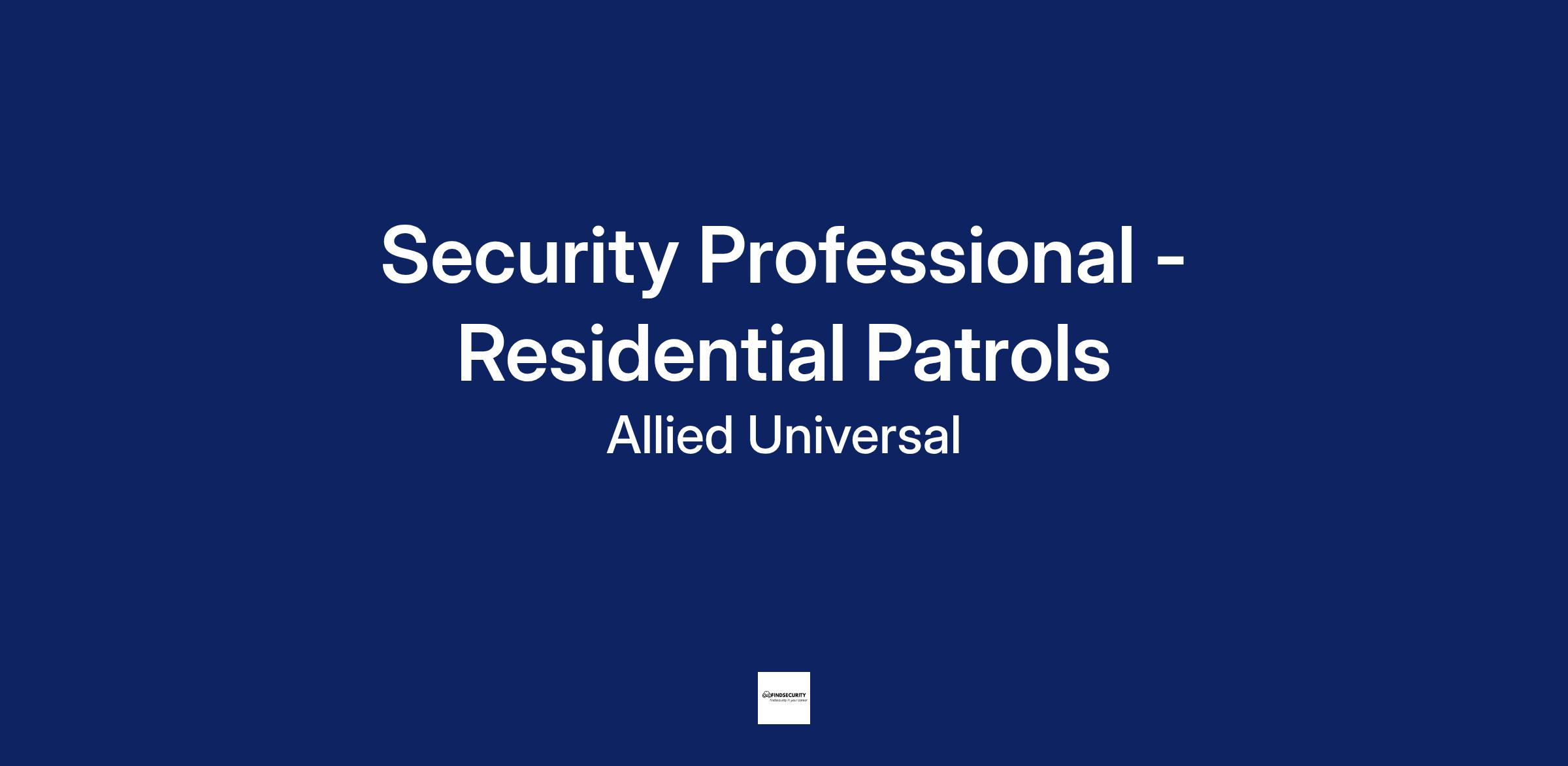As a Security Professional - Residential Patrols in Columbia, SC, you will serve and safeguard clients in a range of industries such as Residential and more .