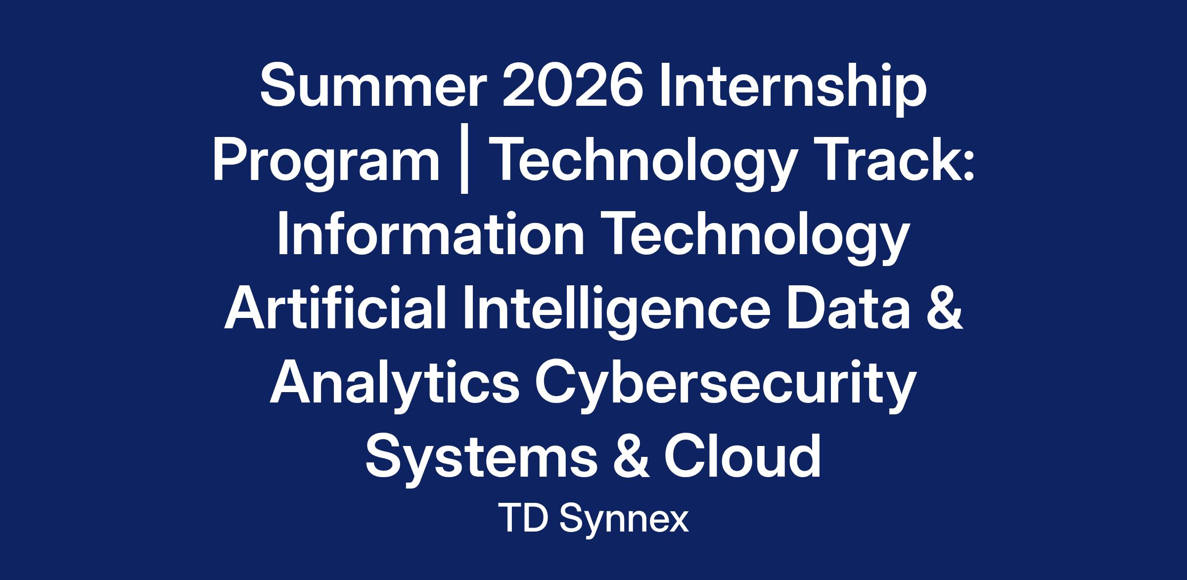 We’re excited for you to Make IT Personal at TD SYNNEX! Our Summer 2026 Internship offers an array of unique, hands-on experience with our business, and is open to all business majors.